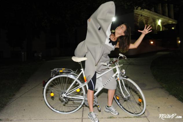 Why? The jazz legend himself would be proud of the artistry involved with shooting a model on top of a 12-foot-high sea foam green Adirondack chair in a shark costume – with a bicycle (helmet included; safety first!).