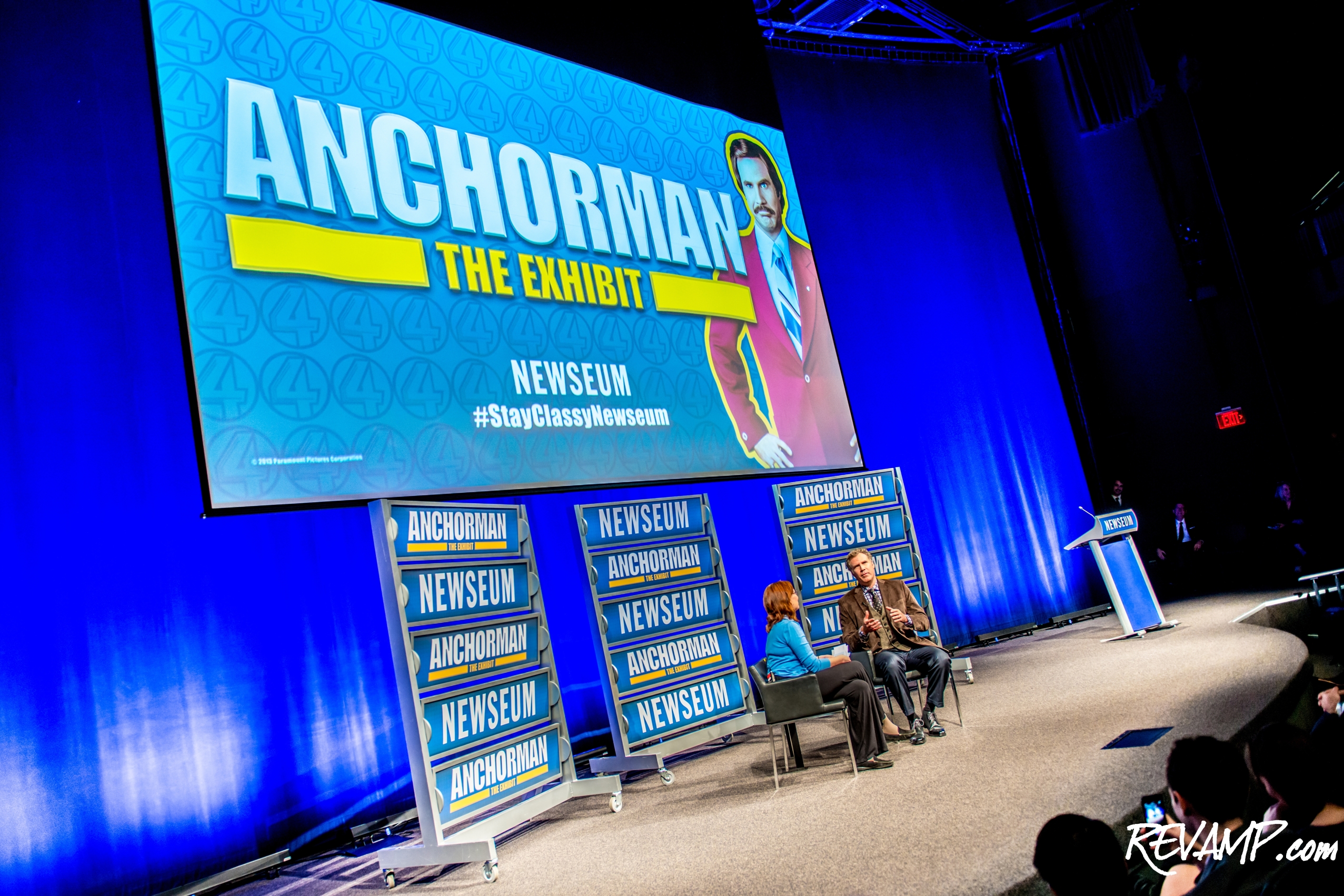 Yesterday's gathering, which drew over a dozen TV camera crews and just as many photographers, served to highlight the museum's newest exhibit, which features costumes, props, and footage from the 2004 hit comedy 'Anchorman'.
