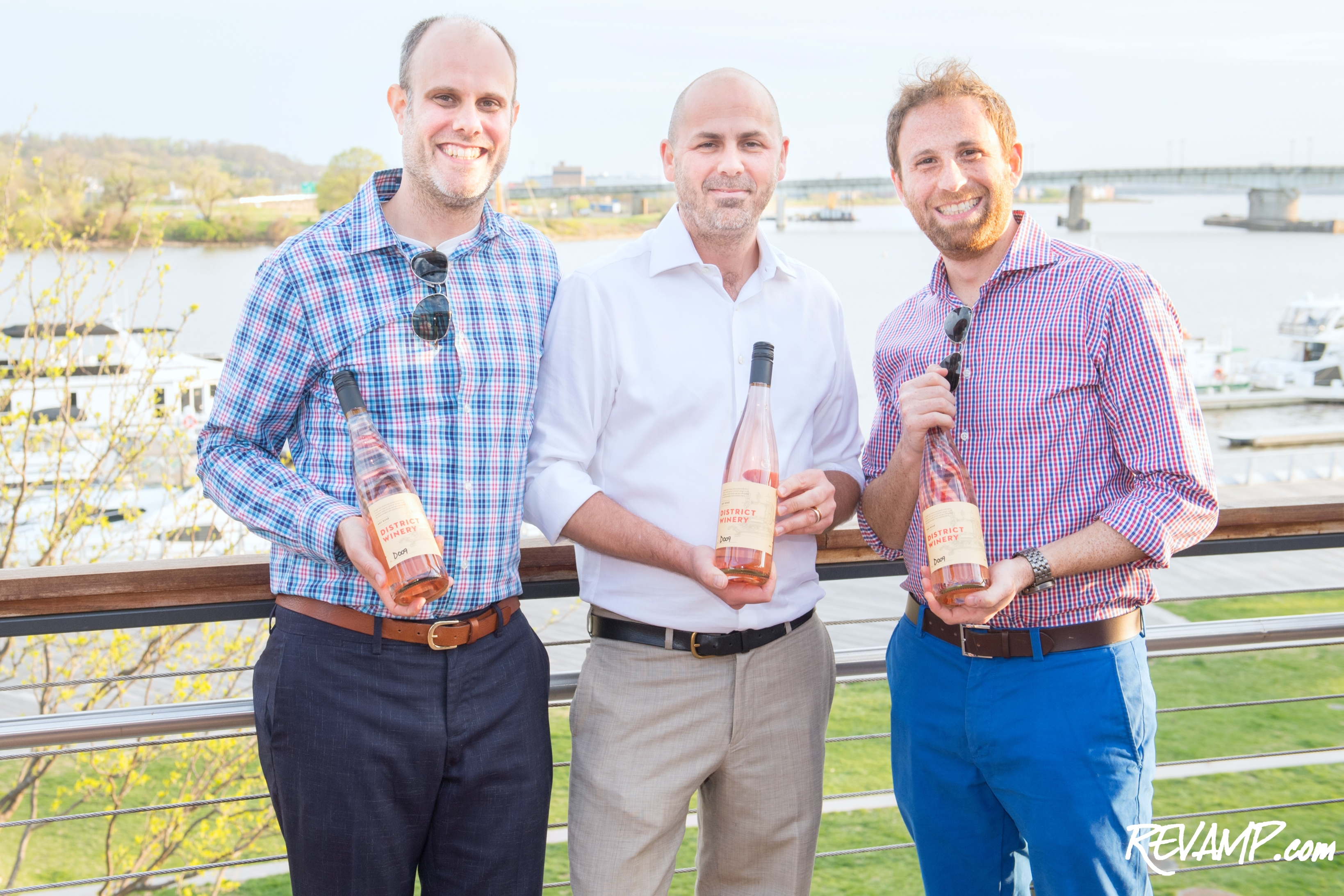 District Winery co-founders John Stires (left) and Brian Leventhal (right) flank company winemaker Conor McCormack.